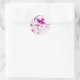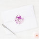 Violette Blumen auf weichem rosa Hintergrund machen dieses Aufkleber Sprichwort "Happy Spring" fröhlich. Es ist wirklich nett, sich an der Entwicklung eines Geschenks anzuhängen