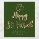 Happy St. Patrick Kleeblatt Clover Elegante Green Imitats Gold Foil Text und 3 Leaf Clovers über Chic Green Background, Modern Script, Happy St Patrick's Day Wein Flasche Label