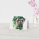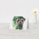 Happy St. Patrick's Day Card mit einem Hund, der einen Hut und eine Bugs-Krawatte trägt. Dies ist eine gefaltete Grußkarte. Das Innere sagt: Happy St. Patrick's Day.