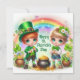 Niedlich Happy St Patrick's Girl and Boy einen Regenbogen, Klee, Blume und einen Topf Gold. Verbreite Freude und festliche Stimmung! Weihnachtskarten, die das ganze Jahr aufhellen.