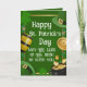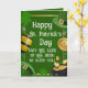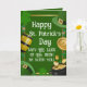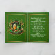 Send heartfelt holiday wishes with this elegant St. Patrick's Day greeting card. The front features a festive green design with golden barrels, pots of gold, and shamrocks alongside the message, "May the Luck of the Irish be with you!"