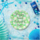 Dieses hübsche Kleeblatt-Muster Papier Platte Set Design ist perfekt für Ihr St Patty's Day Party. Die vierblättrigen Kleeblatten sind weiß mit gelben und blauen Farbspritzen auf grünem Hintergrund, die mit einem lackierten - leicht Retro-getiedeten - Aussehen versehen sind. Die kursiven Worte "Happy Saint Patrick's Day!" sind dunkelgrün. Feiern Sie stilvoll mit den glücklichen Tellern des St. Patrick's Day Party.