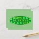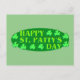 Niedlich, oval mit Kleeblättern und einem Happy St.Patty's Day Gruß auf der Vorderseite dieser Postkarte. Auf der Rückseite der Postkarte befindet sich ein goldener Topf mit Regenbogen und Kleeblatt, mit der Meldung "Möge das irische Glück heute deins sein!"! Eine tolle Möglichkeit, St.Pat's Day Grüße an Familie und Freunde zu schicken.