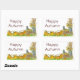 Autocollants d'automne décorés d'une rangée de citrouilles, petite brouette en bois et bouquets de tournesols et de maïs séché peints en aquarelle.