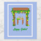 Happy Sukkot Sukkot ist ein achttägiger Urlaub, der erste Tag wird als Vollfest gefeiert, mit besonderen Gebetsleistungen und Feiertagsessen. Sie sehen einen Sukkkot zeichnend, Cartoon Stil. Ein mit Zitronen geschmückter Garten verlasse. Sie können die Hintergrundfarbe ändern.