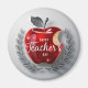 Happy Teachers Day Red Apple Magnet auf silberem Hintergrund. erschaffen. Geschenk für den Tag der Lehrerbewertung!