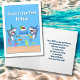 Mit dieser festlichen Geburtstagskarte zum Thema Haifisch können Sie Ihren dritten Geburtstag feiern! Zwei fröhliche Haie halten einen Geburtstagskuchen auf einem Surfbrett-förmigen Kuchenteller, während ein spielerischer Baby-Hai-Pop aus dem Kuchen, das auf einer großen Zahl "3" das perfekte Symbol für eine zweite Geburtstagsfeier. Eine Vielzahl von bunten Meereslebewesen, darunter ein Oktopus, Clownfische, Meeresschildkröten und vieles mehr, schwimmen unter der Szene und sorgen für zusätzlichen Meeresspass und -charme.