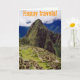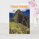 "Happy Travel" weg Karte mit Blick auf die Inka Stadt Machu Picchu, Peru