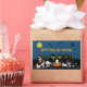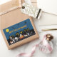 Eine Gruppe von Katzen und Hunden gehen trick oder behandeln zu Halloween Night! Zu den Begleitern in diesem Design zählen ein als Cowboy verkleideter Akita-Inu-Welpe, eine Norwegische Waldkatze mit einer Prinzessenkrone, ein sibirischer Husky, der einen Wagen mit Kürbis darin zieht, eine als Engel verkleidete persische Katze, ein Papillon, ein Basenji, ein als Hexe verkleideter Spitz und eine als Polizei verkleidete Grenze Hund. Unterdessen fliegen Fledermäuse und Hexen unter Vollmond über der Nachbarschaft! Dieses Design kann durch das Hinzufügen von eigenen Texten oder Bildern angepasst oder personalisiert werden!