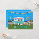 Ein niedlicher Aqua-Camper im modernen Stil aus der Mitte des Jahrhunderts und einige niedliche Urlaubsbedürfnisse wie Hut, Tasche, Sonnenbrille und ein rosa Flamingo! Niedliche Kunst von Cherie's Art, originell wie immer! c)2024