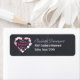 Rücksendeadressen-Aufkleber mit einer niedlichen Abbildung mit einem Haufen von kleinen rosa glitzernden Herzen, die einen herzförmigen Rahmen bilden. Im Inneren sagt es glücklichen Valentinstag in einem trendigen whimsical Schriftart. Set auf schwarzem Chalkboard-Hintergrund.