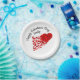 Feiern Sie den Valentinstag mit einem Party! Ein Schuss roter Herzen, der durch das Design fließt, mit "Happy Valentine's Day" in klassischem schwarzen Schriftart, mit individualisierbarem Namen