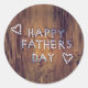 Runde Aufkleber mit meinem Bild von Nägeln, die "Happy Father's Day" auf einer hölzernen Wand mit zwei Herzen ausdrücken.