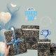 Dieses elegante Verpackungspapier eignet sich hervorragend zum Vatertag. Es zeichnet sich durch ein schönes handgemaltes Muster in Gold auf einem schwarzen Hintergrund aus. Das Muster schließt Herzen mit dem Text "Glücklicher Vatertag" ein. Sie können den Text leicht auf einen Namen, besten Papa oder etwas Ähnliches in diesen Herzen aktualisieren. Diese Umhüllung, mit einem eleganten, stilvollen Schwarz-Gold-Muster mit Herzen, verleiht Ihrem Geschenk Glanz.