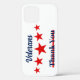iPhone 12 Case, enthält Wörter über Veteranen," Veteranen danke Ihnen" mit US-Flagge Farbe, rot und blau, und roten Sternen zwischen den Worten, Geeignet, um Veteranen Tag zu feiern.