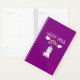 Un planificateur avec une mignonne illustration d'une licorne blanche assise sur sa croûte, souriant et joyeux. Des nuages souriants et un arc-en-ciel au-dessus. Texte : Happy Vibes. Image de levage adorable Avec un arrière - plan d'aquarelle rose violet.