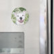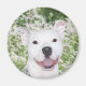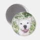 Weiße Pitbulle Terrier Gesicht mit einem großen glücklichen Lächeln und Wildblumen im Hintergrund Hundeliebhaber Kühlschrankmagnet