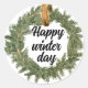 Ein hübscher Tannenkranz und die Worte: Ein glücklicher Wintertag. Klicken Sie auf Personalisieren, um die Wörter in andere kurze Wörter umzuwandeln, oder kaufen Sie sie wie besehen.