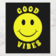 Good Vibes - Cool gelb glücklich lächelnd Gesicht. Fahren Sie die Nachricht mit einem fett gelben schwarzen Design herunter. Good vibes ist ein Slang-Satz für die positiven Gefühle, die von einer Person, einem Ort oder einer Situation gegeben werden. Es rief positive, sichere, fröhliche Empfindungen hervor. Gute Gedanken / positive Energie zu senden, und es kann auch bedeuten 'Richtig an' und 'Go for it!'. Ein Ausdruck für viele Gelegenheiten.