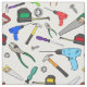 Dieser Stoff mit seinen Illustrationen von Handwerkzeugen und Hardware eignet sich hervorragend für Kleidung für zukünftige Handwerker und Handwerker, Bauunternehmer und Bauarbeiter.