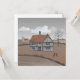 Colourful artwork of an old medieval house in the English countryside, with an old church in the background, and a couple of hares boxing in the foreground. Perfect for anyone who loves folk art.