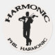 Silhouette eines suave, dashing, debonair Violinisten, mit "Harmonic, Phil Harmonic" Text. Schwarz-Weiß-Grafik, T - Shirt, Schweiß, Karten, Geschenkswag.