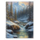 Inmitten einer Winterlandschaft durchquert ein stürmischer Strom einen schneebedeckten Wald. Am Horizont stehen majestätische, gefrorene Berge, deren Gipfel von Schnee geküsst werden. Eine ruhige Szene, in der das Lied des Bachs und die wilde Koalition der Natur ein Portrait von ruhiger Schönheit malen.