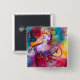 Farbenfrohe, künstlerisch-skurrile, abstrakte figurative zeitgenössische Aquarellmalerei mit drei Spielerfiguren, blumengeschmückten Wirbel, Rose, Blume, vergoldeten Glitzern, Silberfolie in lebhaften Gelb-, Rot-, Blau-, Rosa Fuchsienfarben .