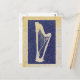 Eine Harfensillhouette in tiefblau auf einem subtilen goldenen und grauen Hintergrund, strukturiert in einer steinähnlichen Textur. Einfach aber schön und klassisch. . . eine tolle Postkarte für alle Harfenliebhaber.