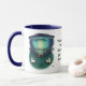 Eine Tasse mit einem lustigen Cartoon über Kühe, Außerirdischen und Ehe. Hintergrund, Bild und Text können personalisiert sein. Originelle Kunstwerke von DBcartoons.