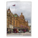 Harrods Department Store à Knightsbridge arborant le drapeau Union Jack pour la Grande-Bretagne. La devise de Harrods est Omnia Omnibus Ubique All Things for All People, Everywhere. Plusieurs de ses départements, dont le département de Noël saisonnier et le Food Hall, sont mondialement connus. Désormais détenu par Qatar Holding après avoir été vendu par Mohamed Al Fayed. Ouvert en 1849.
