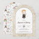 Celebrate your little wizard’s birthday with this charming invitation featuring a cute chibi-style illustration inspired by Draco Malfoy from the Harry Potter series. The design showcases the character in a Slytherin-themed robe holding a wand, surrounded by colorful starburst accents. A parchment-style border frames the arched layout, while playful wizarding icons decorate the back of the card, including books, cauldrons, and magical creatures. Personalize with your child’s name, age, and party details to create a magical first birthday or any age celebration that’s sure to delight Harry Potter fans of all ages.