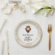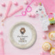 Celebrate your little one on the way with this magical baby shower plate featuring a sweet chibi-style illustration inspired by Hermione Granger from the Harry Potter series. The design showcases the clever witch wearing her Gryffindor robe and holding a wand, surrounded by pastel starburst accents. Customize with the honoree’s name and event date to create an enchanting plate perfect for any Harry Potter-loving family.