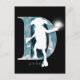 Karo aus dieser Aquarell Dobby-Grafik, mit Dobbys Silhouette in einem Serifenbuchstaben "D".