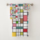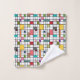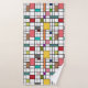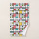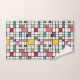 Dieses Handtuchhandtuch-Set ist in einem modernen Design aus der Mitte des Jahrhunderts gehalten, das aus einem Gitter mit schwarzen Linien besteht, die in Retrofarben auf einem weißen Feld Quadrate und Rechtecke aufweisen.