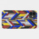 Dieses farbige Glastelefon hat ein Art-Déco-Pfeile in Primärfarben mit Akzenten aus schwarzem und klarem Glas. Das ist kein Foto aus einem Glasfleck; das ist alles digital gefertigte Kunstmuster, das auf einem Computer gemacht wurde. Das ganze Glas ist strukturiert, um es im Musterdesign sehen zu können. Sie können das Muster vergrößern oder verkleinern.