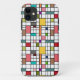 Dieses Handy Gehäuse hat ein modernes Design von einem Gitter aus schwarzen Linien mit Quadraten und Rechtecken in Retro-Farben auf einem Feld von weiß.