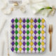 Ein exquisit detailliertes Harlequin-Muster aus lila, goldenen, grünen und weißen Diamanten mit dem Aussehen eines Buntglases!