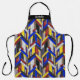 Diese Schürze aus Stoff hat ein farbiges Glasfenster-Design von Art-Déco-Pfeilen in Primärfarben mit Akzenten aus Klarglas und Schwarz-Glas. Das ist kein Foto aus einem Glasfleck; das ist alles digital gefertigte Kunstmuster, das auf einem Computer gemacht wurde. Das ganze Glas ist strukturiert, um es im Musterdesign sehen zu können. Sie können das Muster vergrößern oder verkleinern. Personalisieren Sie diese Schürze mit Ihrem eigenen Namen, verlass leer oder entfernen Sie den Namen und schwarzes Quadrat, um nur eine gemusterte Schürze.