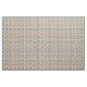 Dieser Stoff hat ein modernes Design von einem Gitter aus schwarzen Linien mit Quadraten und Rechtecken in Retro-Farben auf einem Feld von weiß.