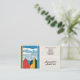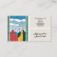 Visitenkarten mit handgezeichnet Illustration eines Buntglasfensters mit blauem Himmel, weiße Wolken, rote, grüne und gelbe Gebäude: perfekt für Künstler aus Buntglas, aber auch Innenarchitektur, Florist, Künstler, Hochzeitsplaner, etc.