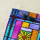 Gestaltete gelbe Daisy aus Glas - Muster, die aus einem Foto eines bunten Glasfensters einer gelben Blume entstanden sind. Erstellt den idealen Ort, um einen Nachmittag am Strand zu verbringen.