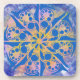 Untersetzer aus hartem Kunststoff mit Mandala-Design in Gelb und Blau.