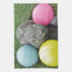 Gelbe, rosa und weiße, leuchtend farbige Golfbälle auf einem Foto von Sandy Closs am Arrowhad-See. Golf, Golfer, Golfen, "Golf Grobse", Frühjahr, "Sport", Ostern, Urlaub, "Osterei" pink, Golfer blau gelb Kaninchen Ostern