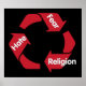 Gerecycelt Symbol zeigt, wie Hass zu Angst und Angst führt zu Religion und Religion zu Hass führt. Es ist ein Teufelskreis von gemeinem, der nur durchbrochen werden kann, wenn man lernt, für sich selbst zu denken.