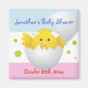 Ein Küken schlüpfen in der Mitte des Bildes. Das obere Banner in hellblauem Himmel mit anpassbarem Text und das untere rosa Banner mit anpassbarem Datumstext.