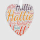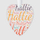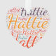 Hattie. Montrez et portez ce populaire beau prénom féminin conçu comme un nuage de mots coloré fait de lettrage à main horizontale et verticale dans différentes tailles et des couleurs fraîches adorables. Portez votre nom américain positif ou montrez au monde que vous aimez ou adorez. Merch avec cette oeuvre d'art en texte souple est un grand cadeau, pas seulement dans le mois de l'histoire des femmes, ou cadeau d'anniversaire.