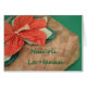Auf Englisch bedeutet Hau`oli La Hanau glücklichen Geburtstag. Diese Karte ähnelt einer meiner Weihnachtskarten, weil diese für alle Feiern verwendet werden. Diese Körbe, oder Kästen, wie sie manchmal genannt werden, sind aus Streifen von Lauhala- oder Kokosnussocken-Blätter gewebt. Sie sind mit Bändern, Stoffstücken, Tapas, Crêpe-Papier und anderen Dekorationen geschmückt. Sie werden manchmal von einer kleinen Figur überragt, die einen Teil der Kultur Hawaiis repräsentiert. Diese Kiste ist mit rotem und grünem Kreidepapier für die Ferien dekoriert. Sie finden viele und vielfältige Dekorationen für jeden Urlaub.