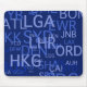Blauer Kasten aus der ganzen Welt abgedeckt mit Dreibuchstabe Codes für Flughäfen