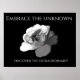 Embrace the mystery with this exquisite poster featuring a ghostly rose illustration rendered in a luxurious goth glam style. A delicate, ethereal rose in a state of spectral beauty is paired with the empowering and mysterious phrase, "embrace the unknown. discover the extraordinary." The artwork blends the beauty of nature with the allure of the supernatural, creating a piece that is both haunting and elegant.